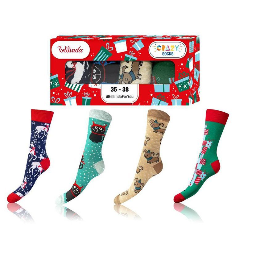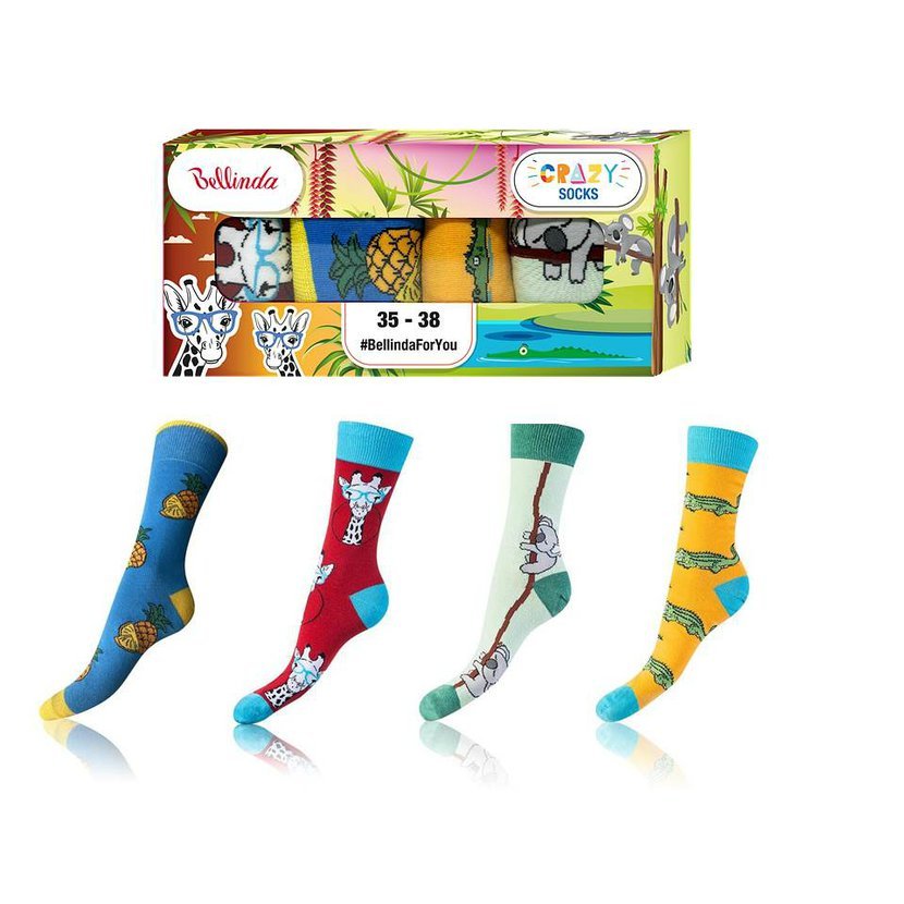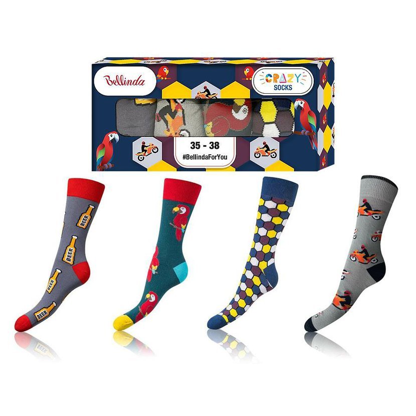 Sada 4 párů veselých crazy ponožek v hravých barevných kombinacích, které potěší každého milovníka originality. Díky vysokému podílu bavlny jsou ponožky pohodlné, prodyšné a vhodné pro celodenní nošení. Součástí je elegantní dárková krabička, takže jsou ideálním tipem na originální dárek.