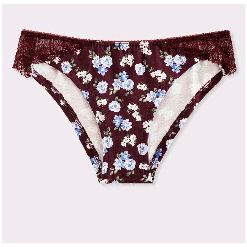 Stylové dámské kalhotky italské značky Jadea v praktickém balení po 3 kusech. Každý kus je v jiné módní barvě (vínová, černá, růžová) se stejným jemným květinovým vzorem.