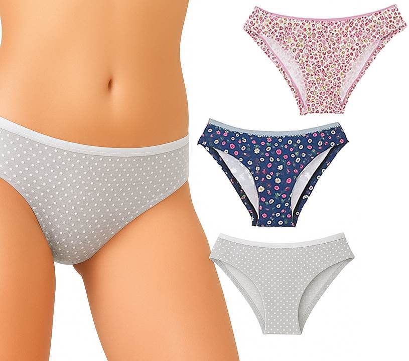 Parametry produktu Jadea - barevné kalhotky bavlněné Cecilia - 3ks - 3ks Puntíky a Květy: světle šedá-růžová, tmavě modrá/S