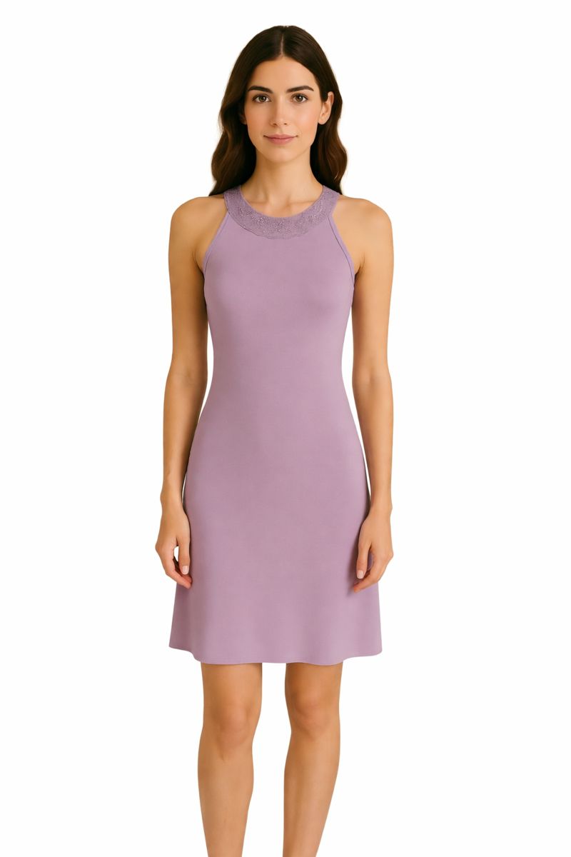 Elegantní noční košilka v jemné levandulové barvě od italské značky nabízí kombinaci ženskosti, pohodlí a stylu. Přiléhavý střih krásně kopíruje siluetu, zatímco výstřih zdobený jemnou krajkou dodává košilce romantický a luxusní nádech.
